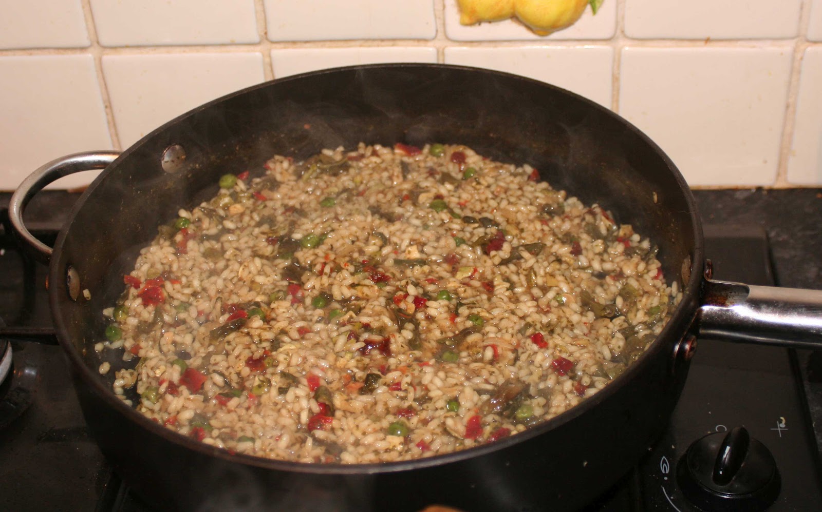I think I might have used too big a pan, which is perhaps why it didn’t cook as well as it should have done, but I liked it. It was like an upmarket savoury rice without the extra additives. If you’re stuck for time and risotto from scratch is out of the question, this could be your answer.