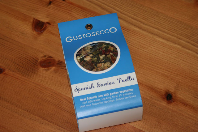 A few weeks ago I wrote about a gift from Flavrbox, a hamper of artisan products – heaven for a foodie such as myself. Well among the lovely bits and pieces in the box was this Spanish Garden Paella from Gustosecco, and last night Dot and I had it for dinner.